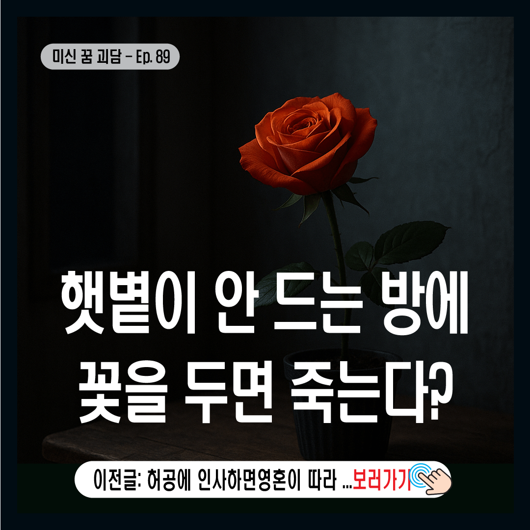 - 미신 내용: 햇볕 없는 방에 꽃을 두면 죽는다는 전통적 믿음