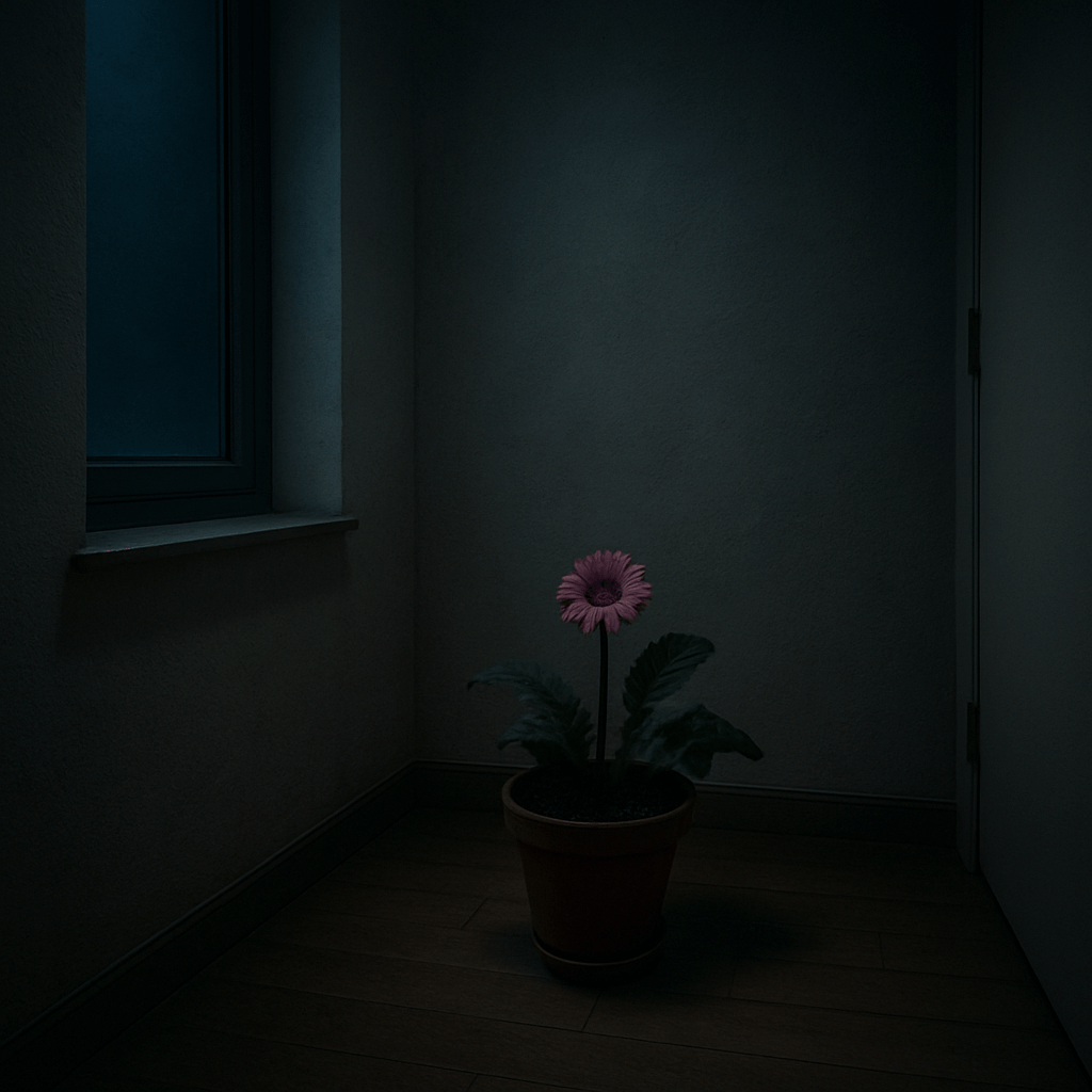 햇살 한 줄기 들어오지 않는 방 안, 그 안에 놓인 화분 하나. 처음엔 생기가 넘쳤던 꽃이었지만 시간이 흐를수록 고개를 떨구고 잎이 시들어 갑니다.