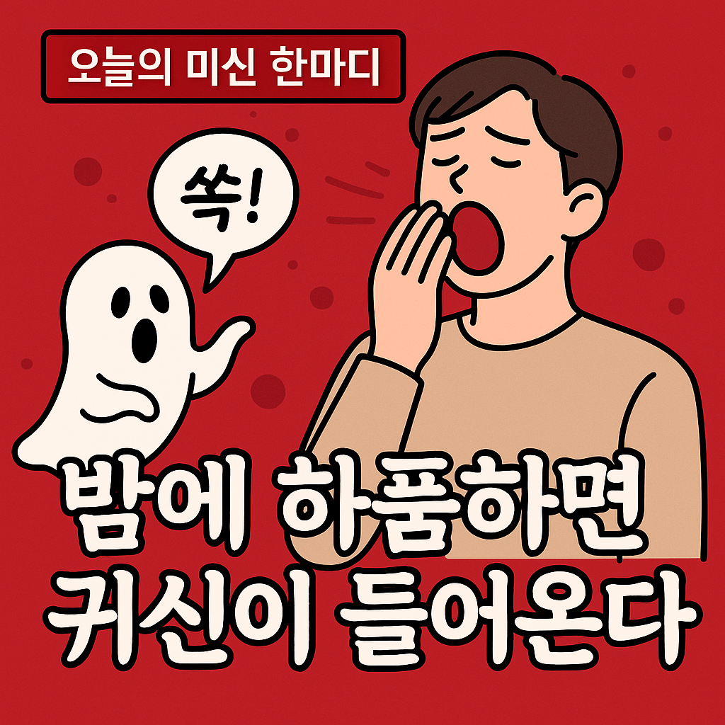 밤늦은 시간, 조용한 방 안에서 하품이 터졌을 때. 괜히 얼른 입을 가리게 되고, 누가 볼까 뒤를 돌아보게 되는 그 순간. 우연일까, 아니면 어릴 적 들은 그 무서운 말이 떠올라서일까?