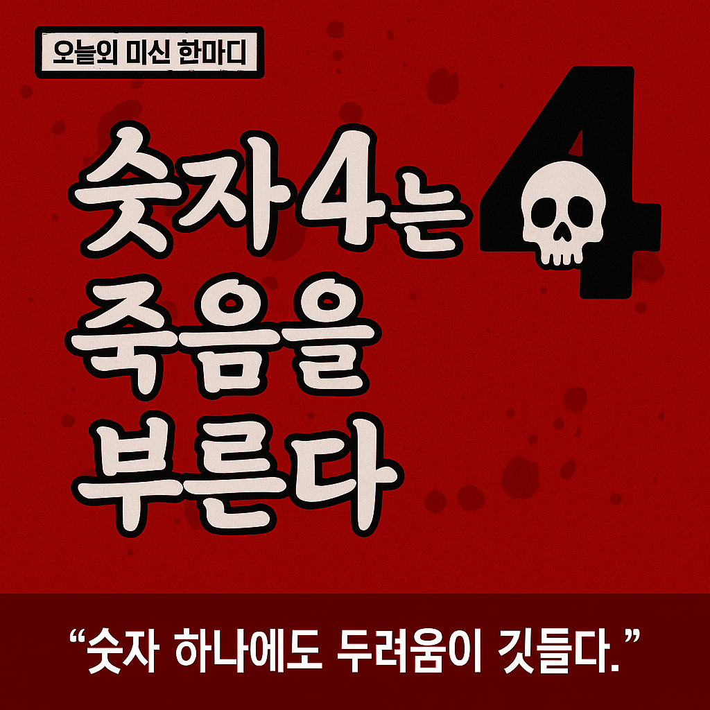 숫자는 원래 중립적인 기호지만, 인간은 의미를 부여하기 좋아한다. 특히 죽음과 같은 강한 감정의 상징이 결합되면, 그 숫자는 공포의 매개체가 된다. 숫자 4는 이제 단순한 수치가 아니라, 불안과 연관된 조건 반사가 되었다.