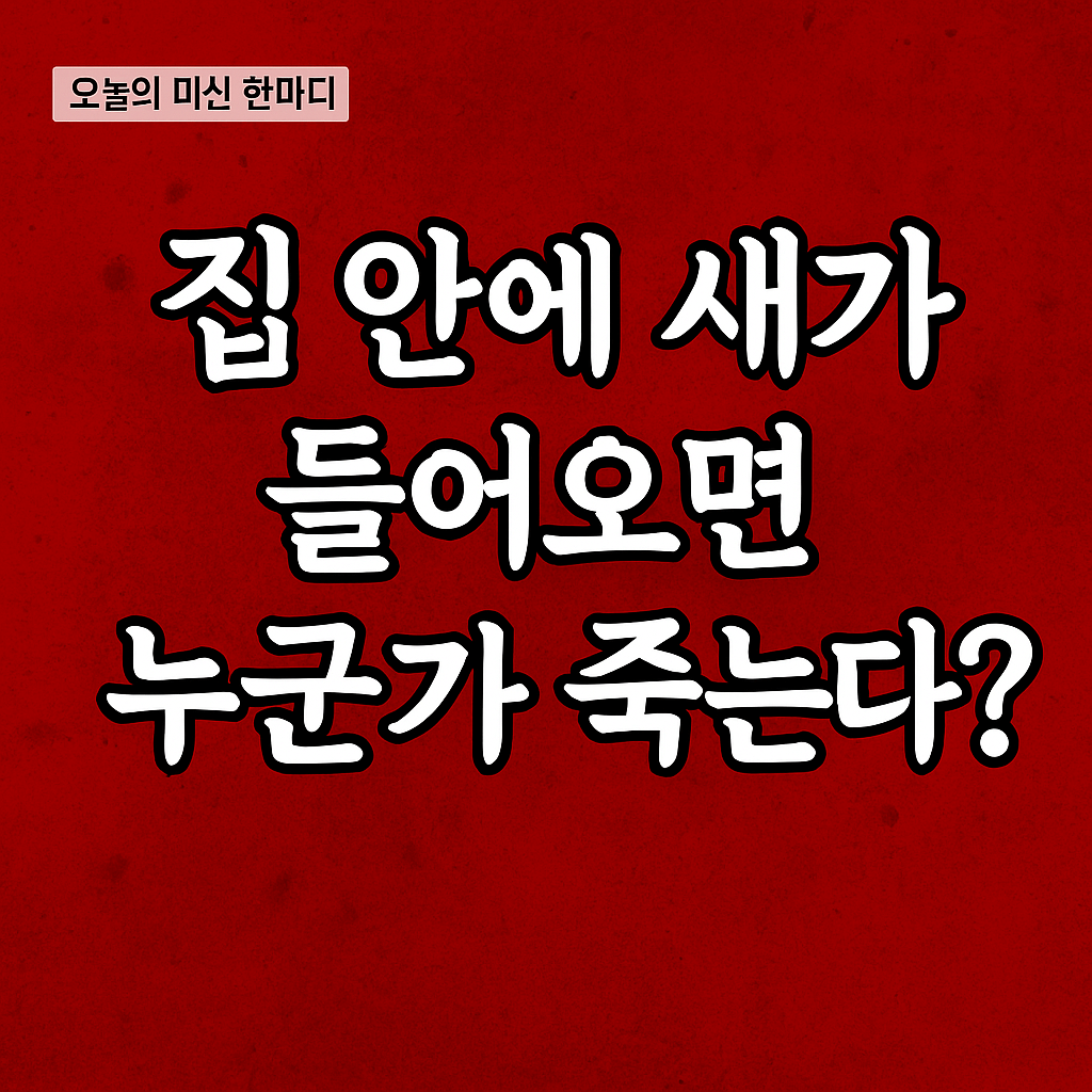 - 미신 내용: 새가 집 안으로 들어오면 누군가 죽는다는 속설