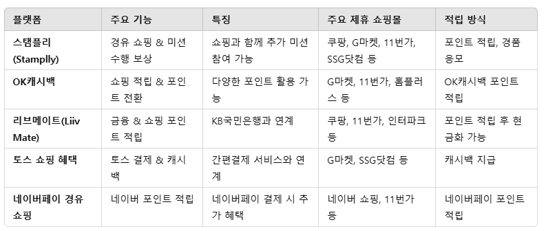 • 자신의 소비 패턴에 맞는 경유 쇼핑 플랫폼을 선택하면 더 많은 혜택을 받을 수 있습니다.