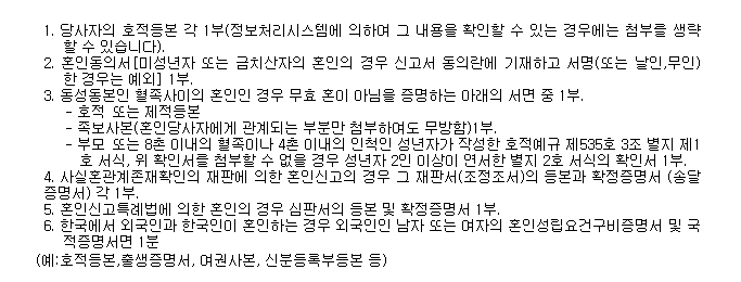 혼인신고 시 유의사항