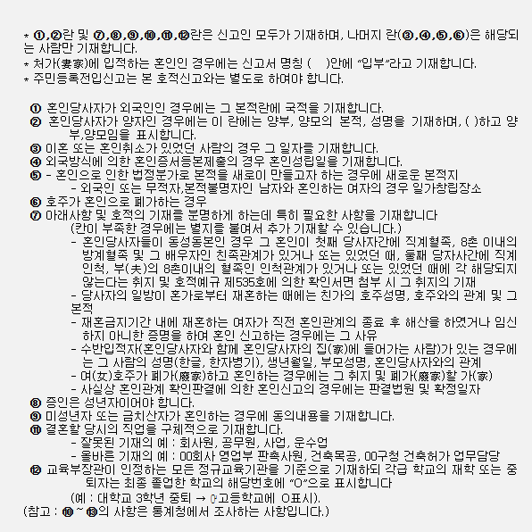 • 혼인신고서 작성 시 실수하지 않기