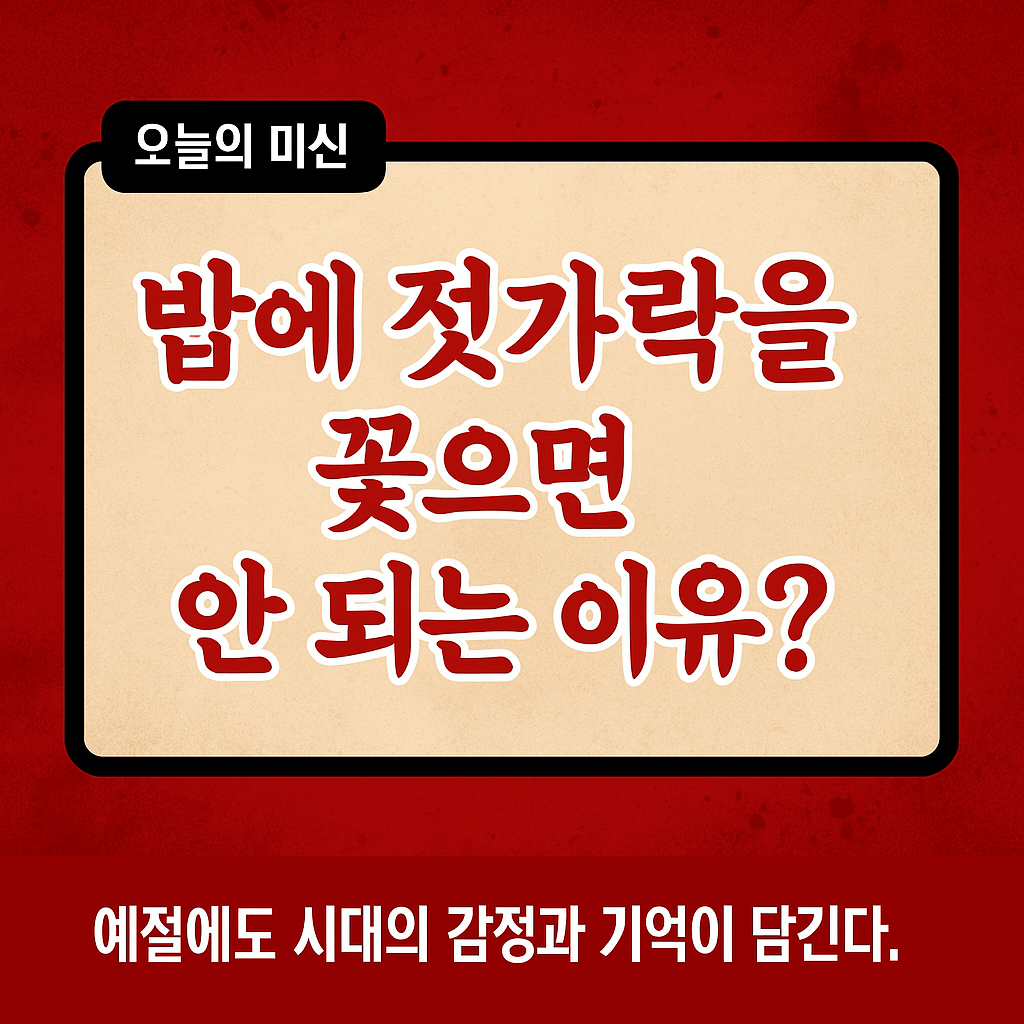 어릴 적 한 번쯤 혼나보셨죠? 밥그릇 한가운데 꽂힌 젓가락을 보고 어른들이 깜짝 놀라며 말리던 기억. 단순한 예절일까요? 아니면 무언가 더 깊은 의미가 있는 걸까요?